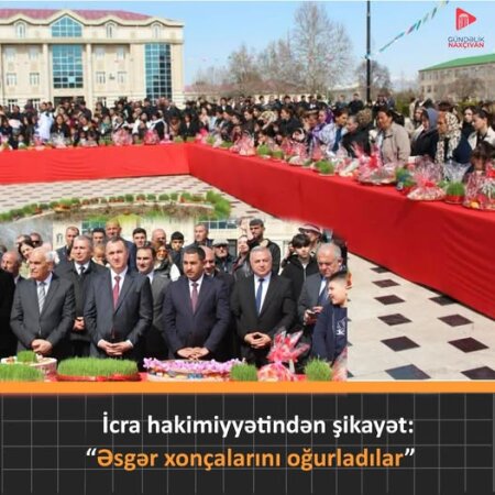 Şərurda “əsgərə pay” adı ilə şagirdlərdən yığılan bayram xonçalarının yerli icra hakimiyyəti tərəfindən mənimsənildiyi bildirilir. Valideynlər “Gündəlik Naxçıvan”a bildirirlər ki, rəsmilər onları aldadıb, əsgərlər üçün nəzərdə tutulan payları rəsmi bayram tədbirinə aparıblar.