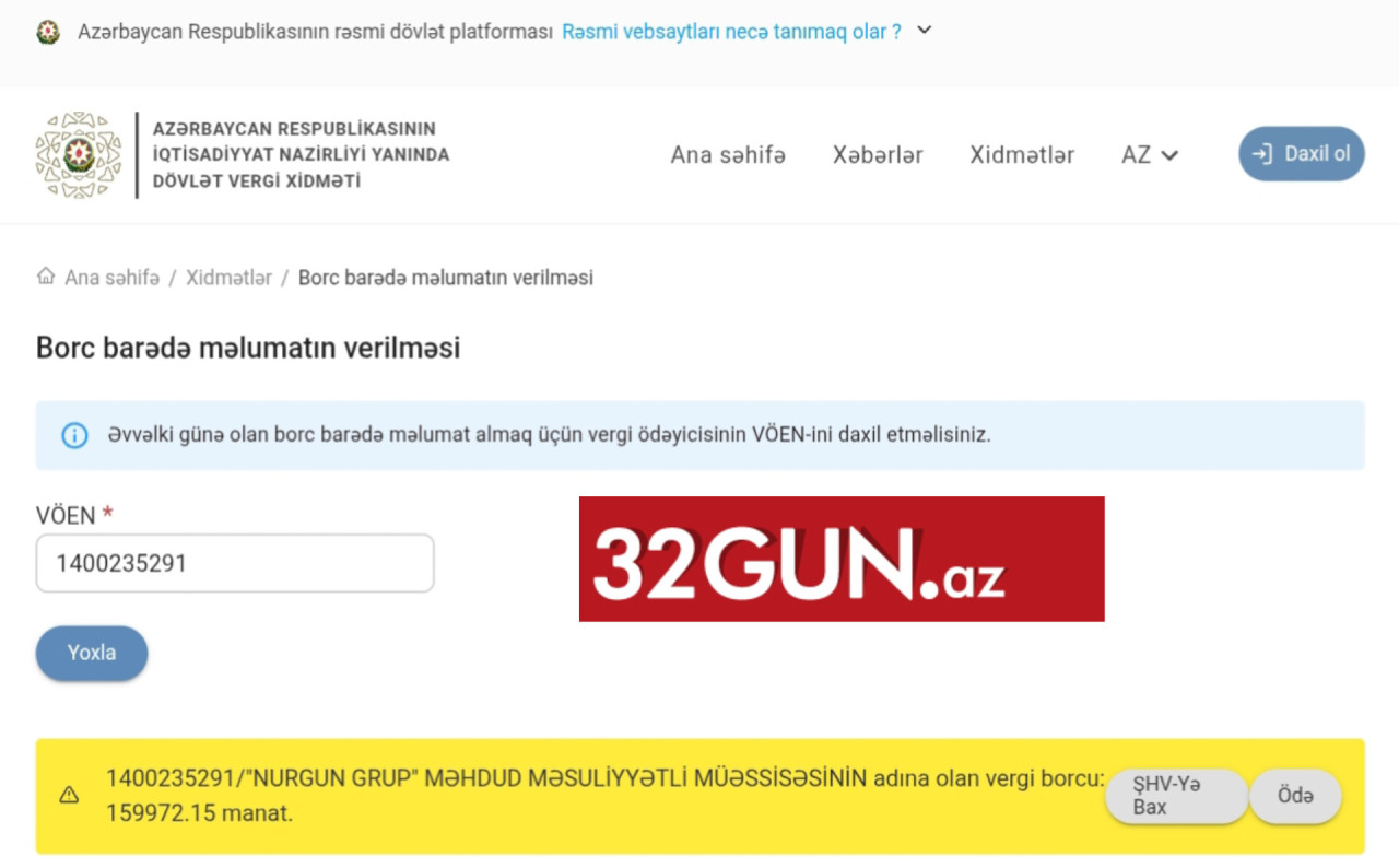32gun.az-ın əldə etdiyi məlumata görə, holdinqin hazırda 159 972.15 manat məbləğində vergi borcu yığılıb.