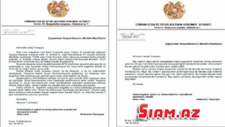 Bildirilib ki, Ermənistan Hökumət Aparatının Vətəndaşların qəbulu və müraciətlərinin müzakirəsi idarəsinin müdiri Aleksandr Qazaryanın 5 oktyabr 2020-ci il tarixdə Ermənistan Müdafiə nazirinə göndərdiyi iki məktubda işğalçı ölkənin ordusundakı acınacaqlı vəziyyət öz əksini tapıb.