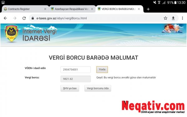 Bakı Şəhəri Baş Səhiyyə İdarəsinin sözügedən satınalmada qoyduğu şərtlərdən biri də "Dövlət Satınalmaları Haqqında" Qanuna uyğun olaraq Vergilərə və digər icbari ödənişlərə dair yerinə yetirilməsi vaxtı keçmiş öhdəliklərin olmaması haqqında arayışdır. Lakin "Avanqard AN Servis" Məhdud Məsuliyyətli Cəmiyyətinin bu günə olan vergi borcu 9821 manat təşkil edir.