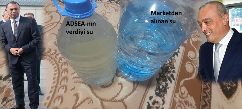 Fotolarda iki fərqli su nümunəsi əks olunub. Onlardan biri marketdən alınan təmizlənmiş sudur, digəri isə İri Şəhərlərin Birləşmiş Su Təchizatı Xidməti tərəfindən şəbəkə xətti ilə evlərə verilən sudur. Görüntülər arasındakı fərq açıq şəkildə hiss olunur və verilən suyun yararsız, təmizlənməmiş. olduğu açıq görünür.