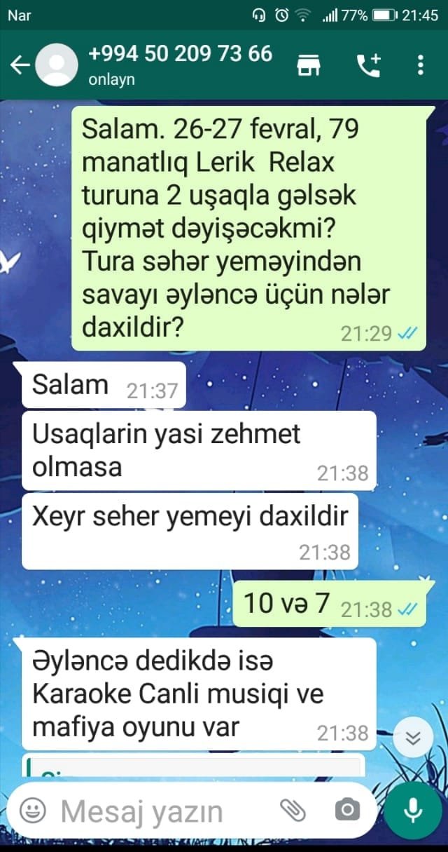 Kampaniyanın həqiqi olub-olmadığı ilə bağlı “Relax”ın nümayəndəsi ilə telefon əlaqəsi saxlanılıb və bildirilib ki, belə bir proqram nəzərdə tutulub. İstirahət mərkəzində yerləşmək üçün əvvəlcədən rezerv etmək lazımdır. O, qeyd edib ki, diskotekaların, konsertlərin və uşaq əyləncələrinin təşkili üçün bütün tədbirlər görülüb.